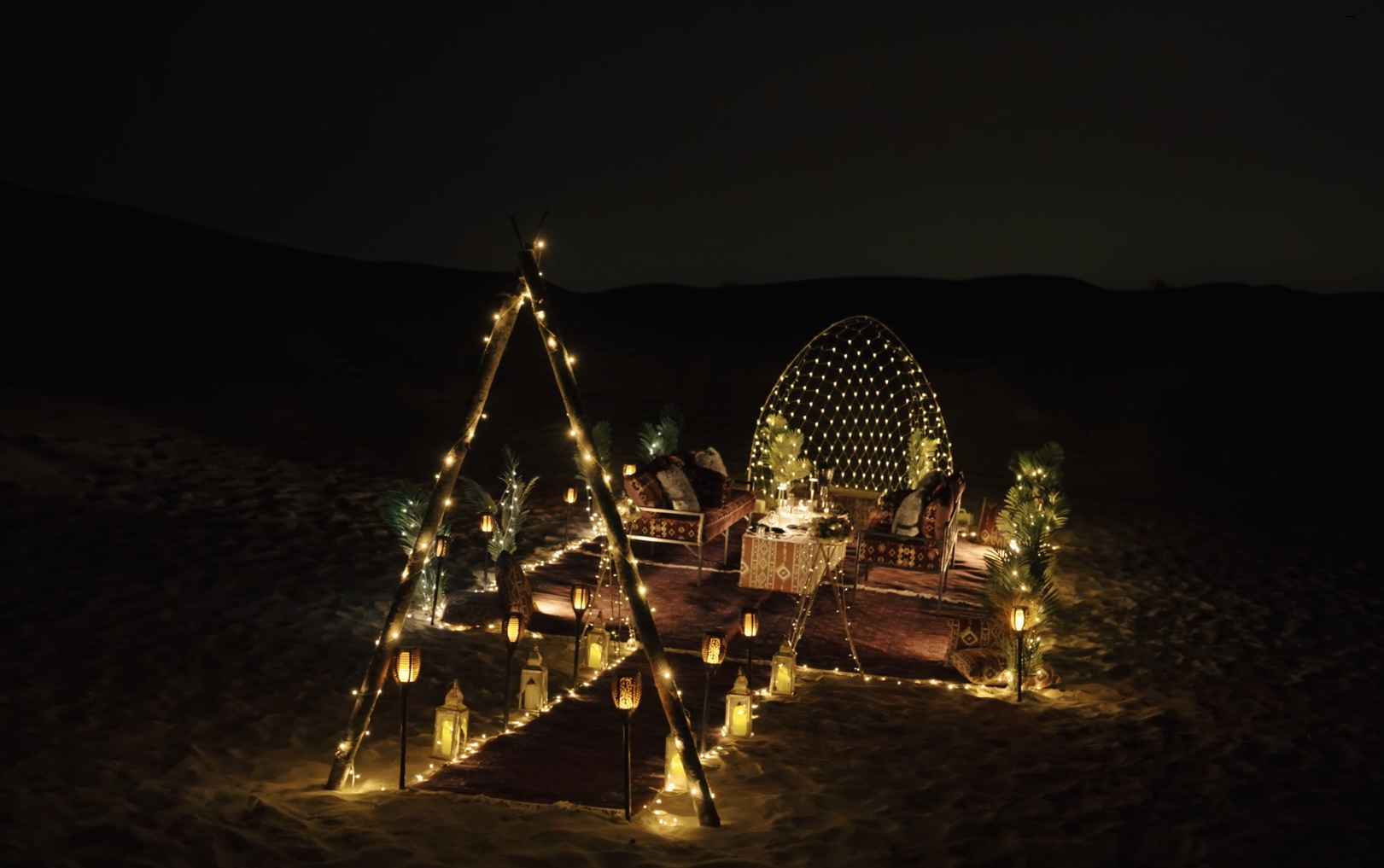 Private Bespoke DinnerDiscover an exceptional luxury private bespoke dinner experience set amidst the stunning desert landscape. This exclusive 5-hour dining experience offers the perfect blend of personalized service, gourmet cuisine, and breathtaking desert views. Indulge in a customized menu designed t o cater to your tastes, while enjoying an ambiance of elegance and serenity. Ideal for those seeking a unique fine dining experience combined with the beauty of the desert, this bespoke dinner promises an unforgettable evening of luxury and sophistication.